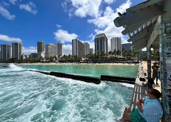 Appartement 2 Minute Walk To Waikiki Beach, Free Parking est niché dans le quartier "Waikiki" à Honolulu, juste à côté de St. Augustine by-the-sea Catholic Church. Le Musée militaire U.S. Army Museum of Hawai'i est situé à 25 minutes à pied de la résidence.